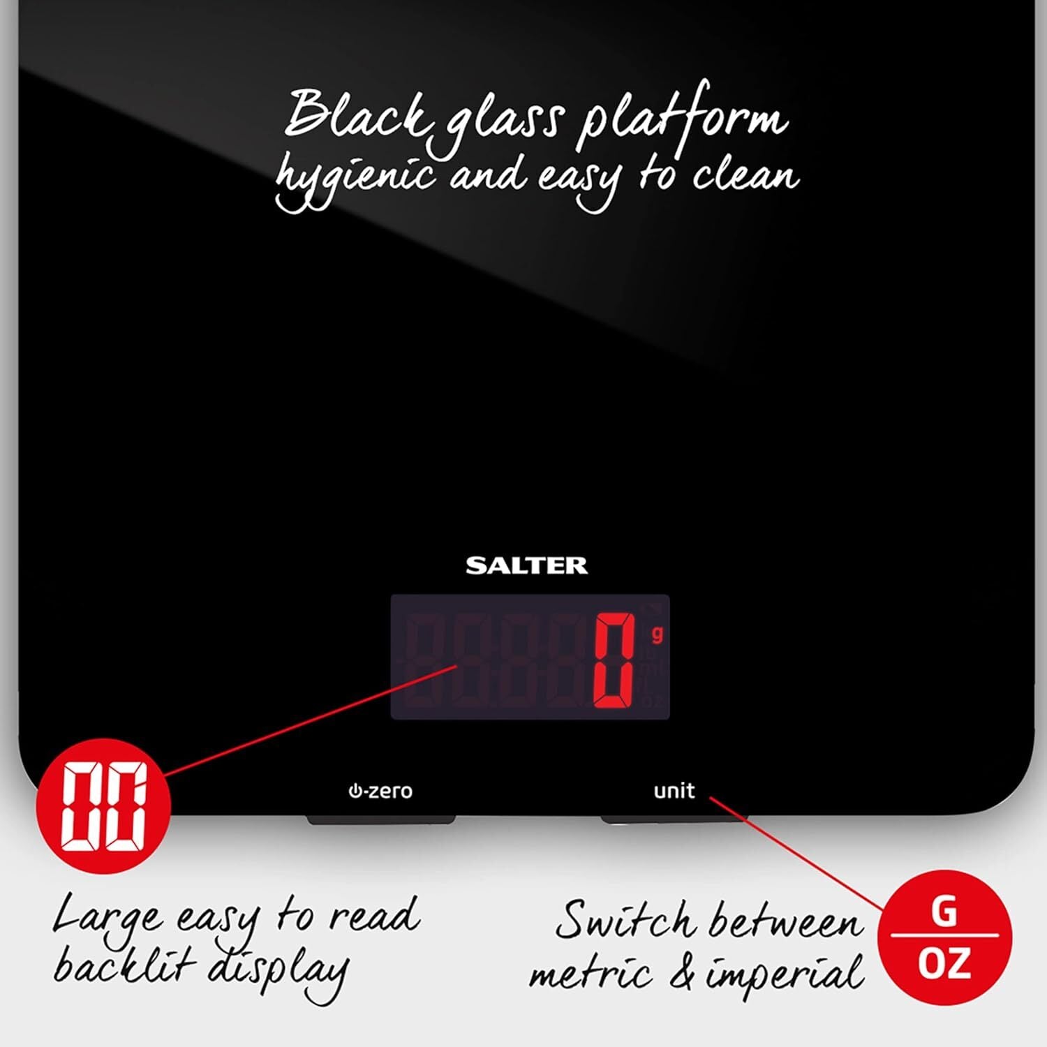 Salter 10kg Glass Electronic Digital Kitchen Scale - Black