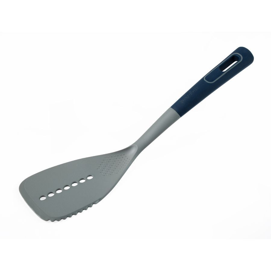 - An essential cooking tool for any kitchen, this slotted spatula from the Salter Indigo Collection offers high-quality reliability.