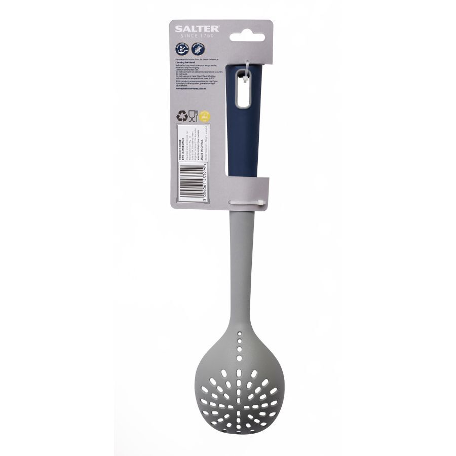 - An essential cooking tool for any kitchen, this slotted spoon from the Salter Indigo Collection offers high-quality reliability.